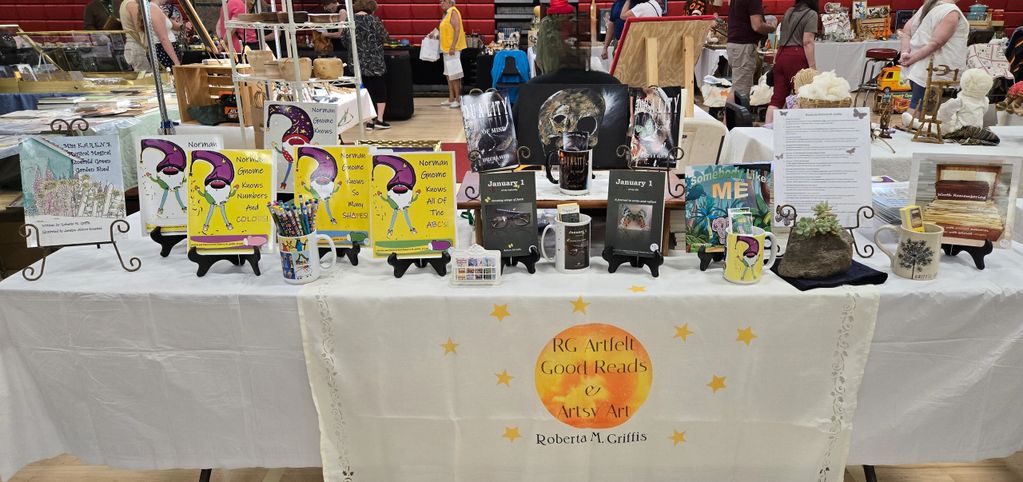 As a local artist and author, here I am set to showcase my vibrant acrylic paintings and captivating books at this year’s annual craft fair. Known for my colorful and expressive artwork, my booth is always a highlight for visitors of all ages.